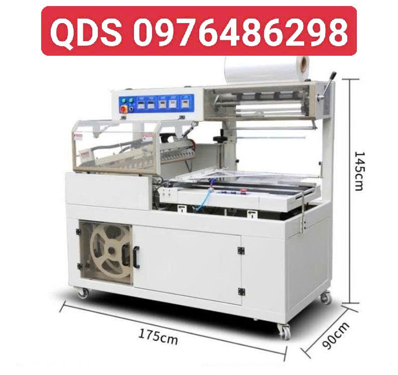 - Máy cắt màng FQL450L: Thiết bị có chức năng bọc, cắt, hàn 2 bên màng co cho vừa với sản phẩm sau đó sẽ được băng tải chuyển đến máy co màng.